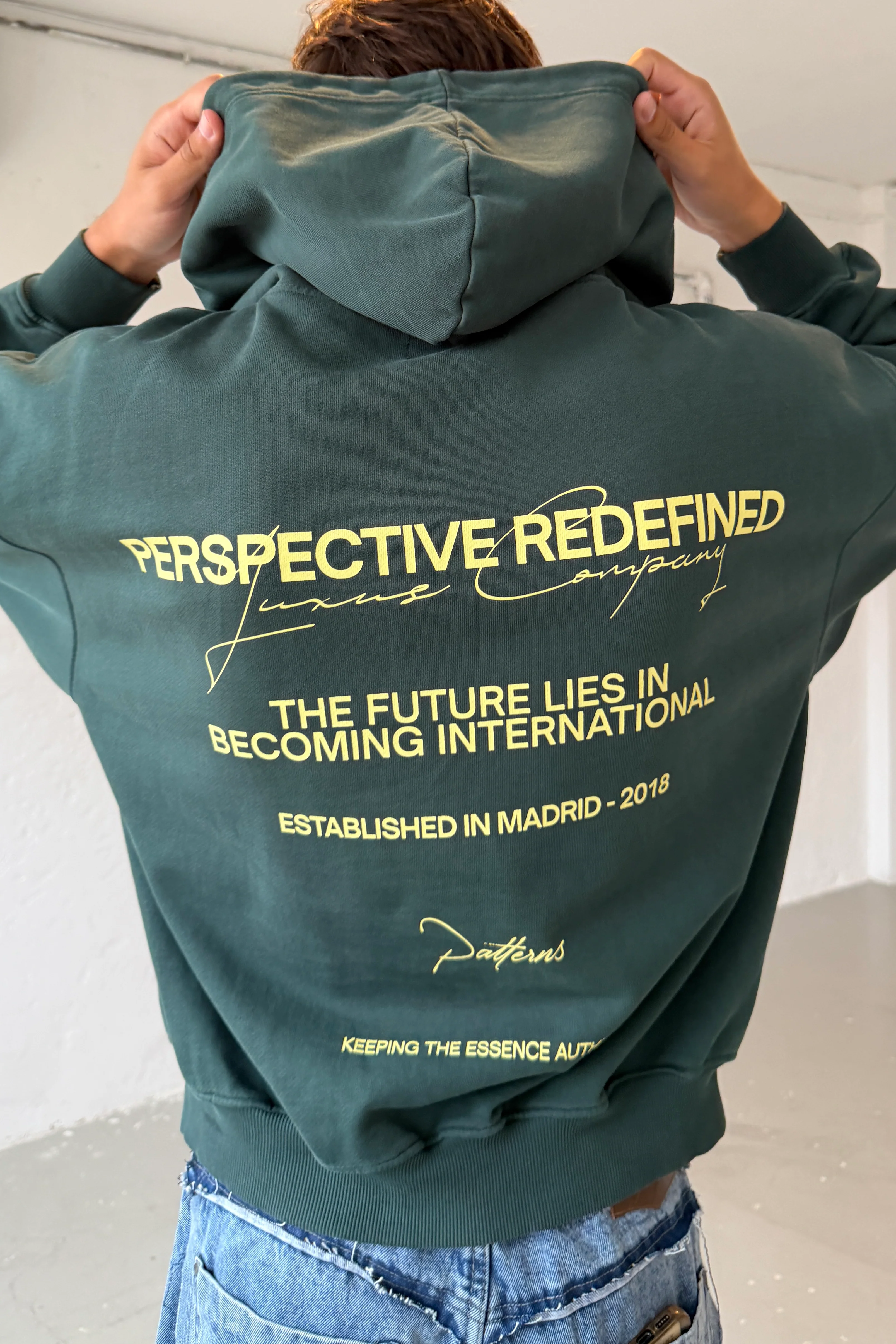 Introducing the Patterns hoodie in dark green colour, a piece conceived to portray strength and balance while establishing a global vision. Designed in line with Seoul's contemporary aesthetics and the phosphorescent colors that specially represent the heart of South Korea’s capital.
