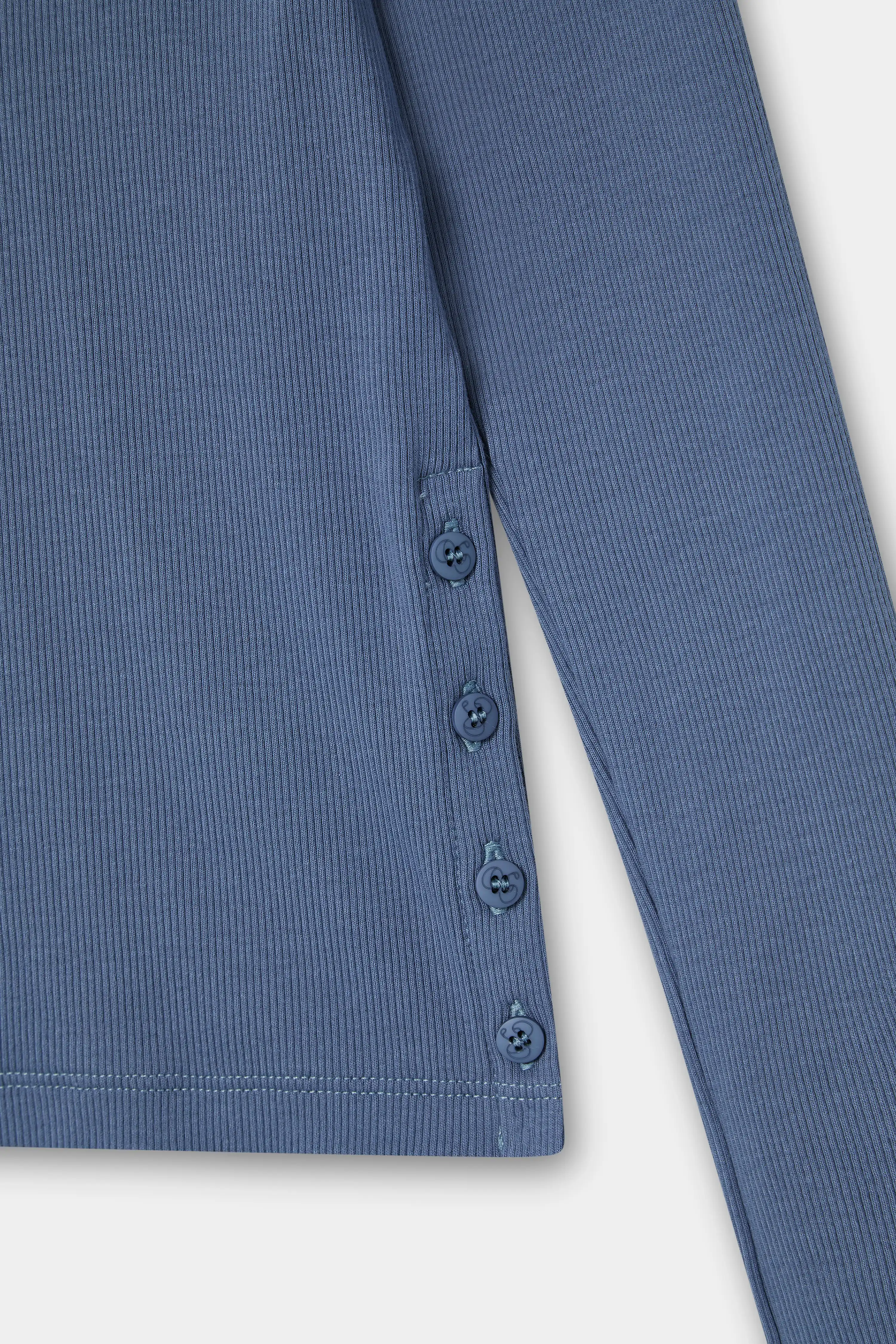 Introducing the new FOR HER longsleeve in blue. This collection explores intimacy, comfort, and everyday ease. Effortless, second-skin silhouettes move naturally with the body. Cotton essentials focused on fit, movement, and versatility.