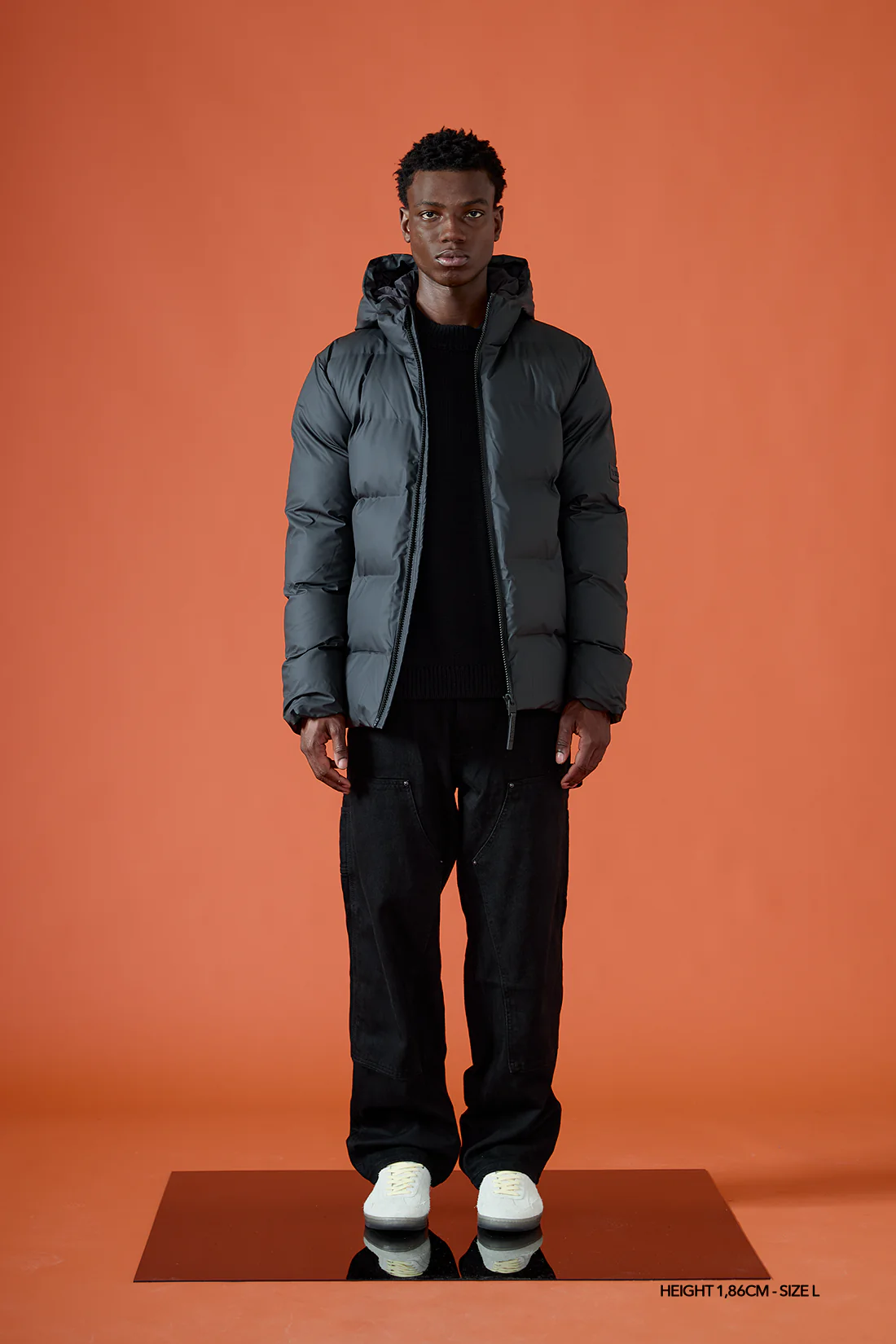 Shaping the spectrum between black and white. Introducing the Grayscale coat in mamba black color, a piece based on neutrality crafted from premium materials with a focus on durability. Highest quality on the market, pioneering techniques featuring exclusive finishes.