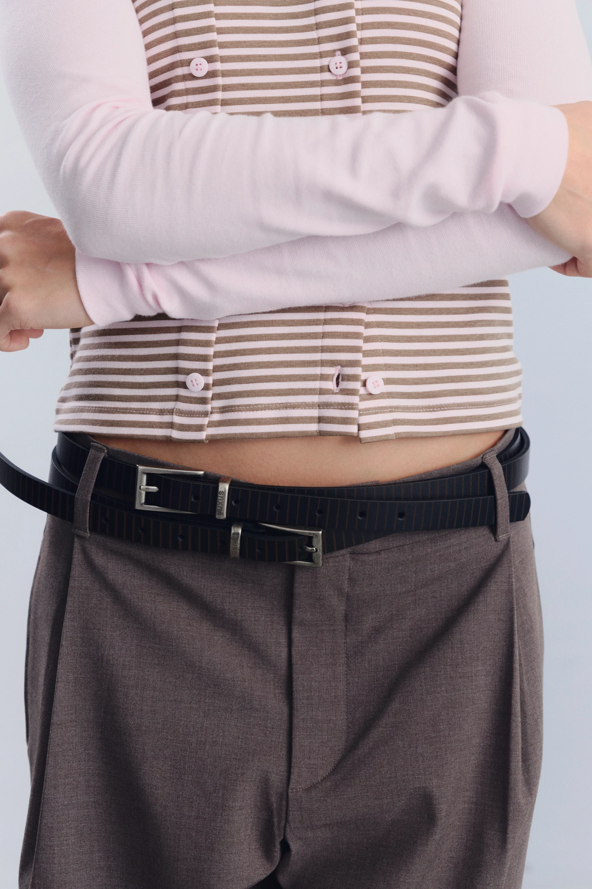Introducing the new FOR HER longsleeve in pink and brown stripes. This collection explores intimacy, comfort, and everyday ease. Effortless, second-skin silhouettes move naturally with the body. Cotton essentials focused on fit, movement, and versatility.
